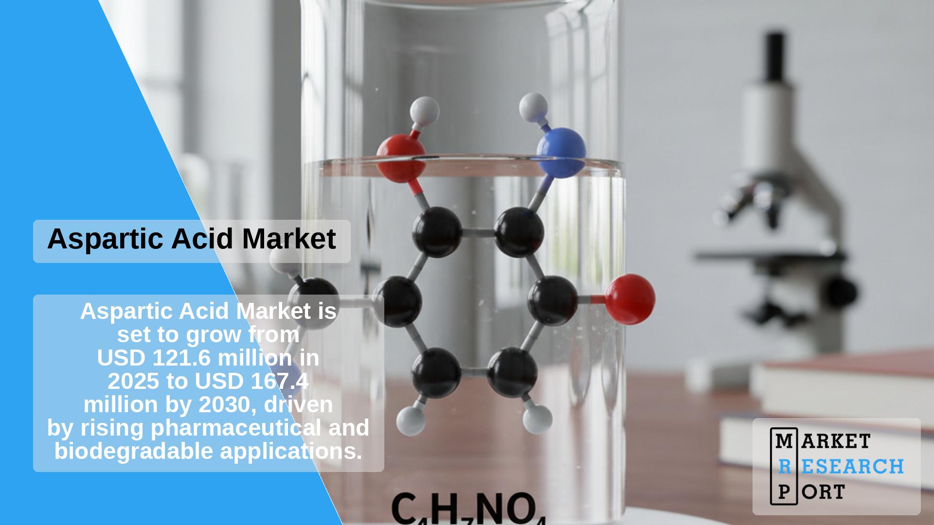 The global aspartic acid market was valued at USD 121.6 million in 2025 and is projected to reach USD 167.4 million by 2030, expanding at a CAGR of 6.6% during the forecast period. The demand for aspartic acid is driven by its growing use in pharmaceuticals, dietary supplements, and biodegradable materials. Rising consumer preference for natural and eco-friendly ingredients continues to be a major factor driving market growth. Increasing awareness about health benefits, environmental sustainability, and the use of bio-based raw materials is strengthening the market outlook.