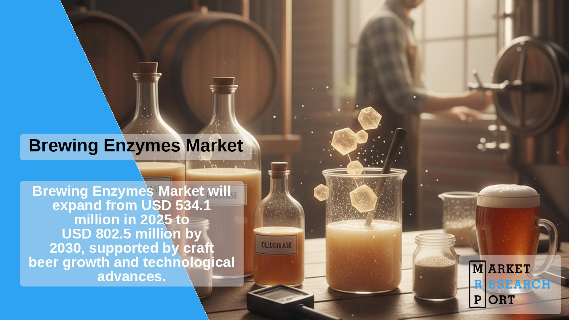The global brewing enzymes market was valued at USD 534.1 million in 2024 and is projected to reach approximately USD 802.5 million by 2030, growing at a CAGR of 6.8% during the forecast period. The demand growth is fueled by rising beer consumption, the expansion of craft breweries, and technological advancements in enzyme biotechnology that enhance brewing efficiency and sustainability.