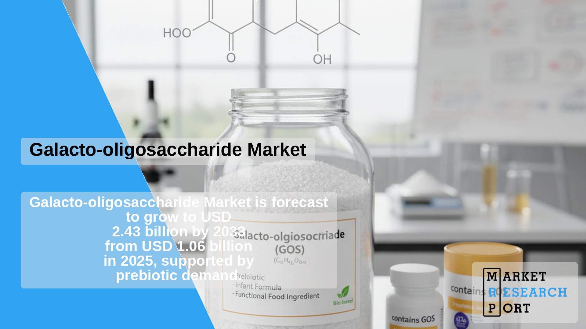 The global galacto-oligosaccharide (GOS) market was valued at USD 989.4 million in 2025 and is projected to reach USD 2.28 billion by 2033, expanding at a compound annual growth rate (CAGR) of 9.8% from 2025 to 2033. Market growth is primarily driven by the rising incorporation of GOS in infant nutrition, functional food products, dietary supplements, and animal feed, alongside increasing consumer awareness regarding digestive and immune health benefits.