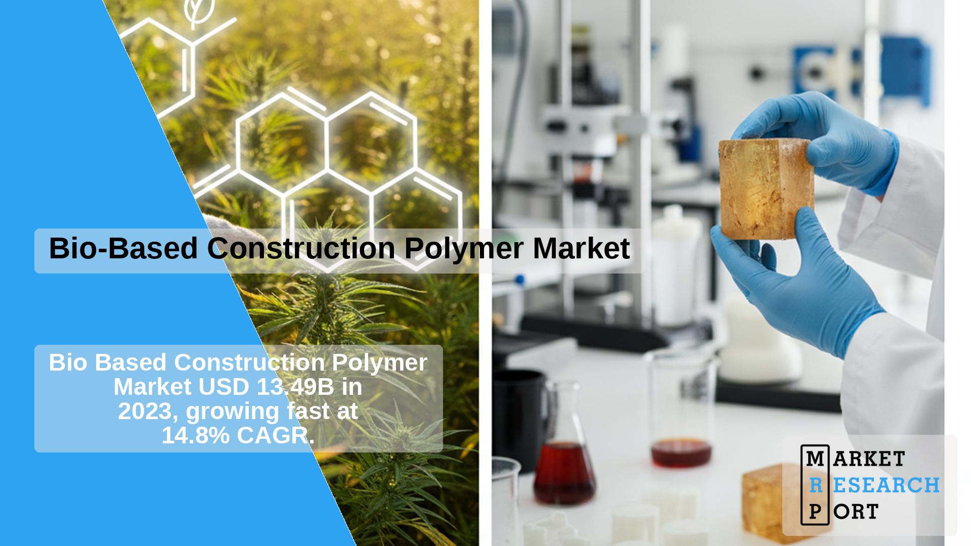 The global bio-based construction polymer market was valued at USD 13.49 billion in 2023 and is expected to grow at a CAGR of 14.8% from 2024 to 2030. Growth is credited to the strategic use of renewable raw materials such as biomass, agricultural waste, and other sustainable feedstocks. This aligns with green building trends and a rising focus on sustainability in construction.