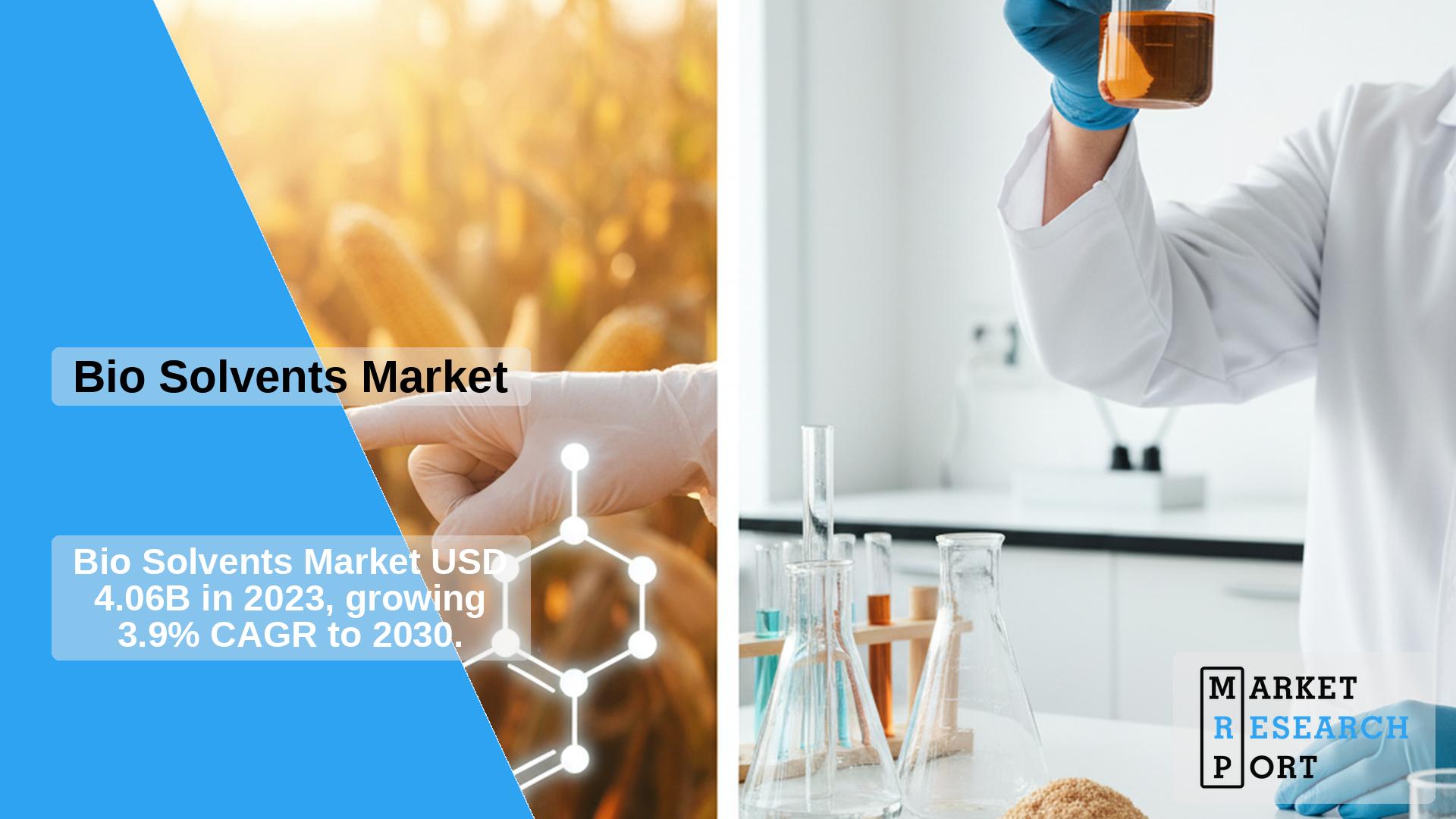 The global bio solvents market was valued at USD 4.06 billion in 2023 and is expected to grow at a CAGR of 3.9% from 2024 to 2030. This growth is primarily driven by increasing environmental concerns and stringent government regulations encouraging industries to adopt eco-friendly solvents. Bio solvents, derived from renewable resources, are seen as sustainable and less toxic alternatives to traditional petroleum-based solvents.