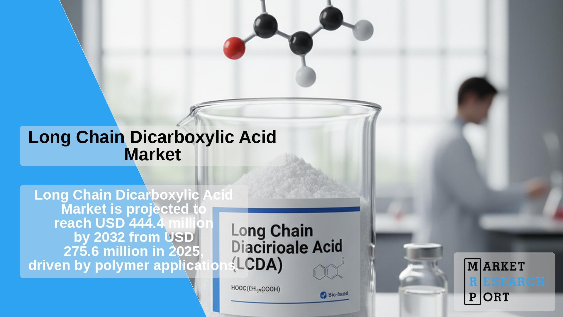 The global long chain dicarboxylic acid (LCDA) market reached USD 274.8 million in 2025 and is projected to touch USD 441.7 million by 2030, expanding at a CAGR of 8.2% during the forecast period. Growth is driven by the increasing use of long chain dicarboxylic acids in nylon, polyamide, lubricants, coatings, and corrosion inhibitor applications. Being a bio-based product manufactured through fermentation processes, LCDA has gained attention for its sustainability and reduced environmental footprint compared to petrochemical alternatives.