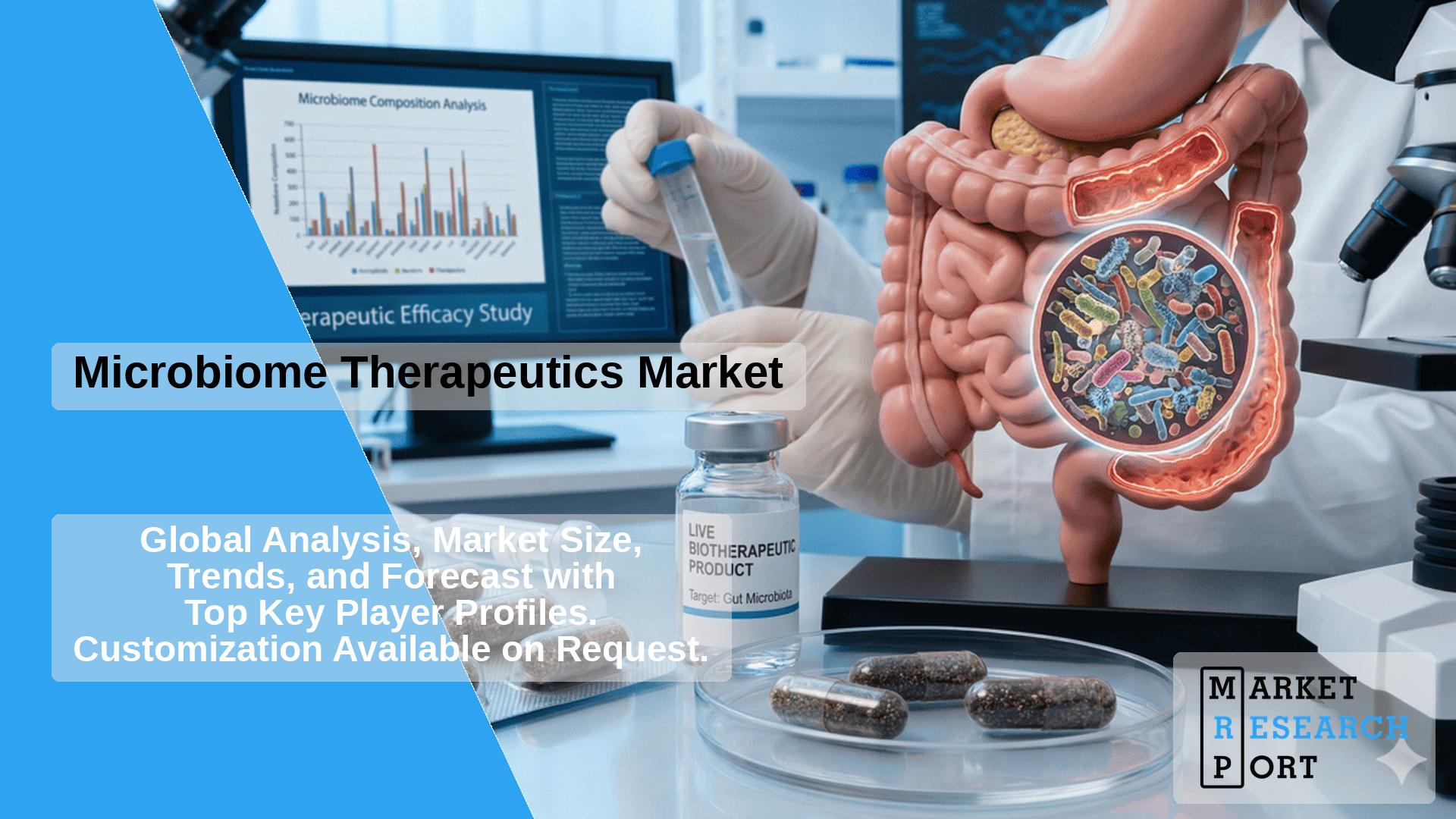 Microbiome therapeutics refer to a class of medicinal products that utilize the human microbiota—the trillions of microorganisms living in and on the human body—to treat, prevent, or cure diseases. Unlike traditional small molecules or biologics that target specific human proteins, these therapies aim to restore ecological balance or introduce specific metabolic functions via beneficial microbes. The primary categories include Live Biotherapeutic Products (LBPs), which are biological products that contain live organisms, such as bacteria; Fecal Microbiota Transplantation (FMT), involving the transfer of microbial communities from healthy donors; and Prebiotics/Postbiotics used as pharmaceutical-grade interventions. The market also encompasses Small Molecule Inhibitors that target microbial enzymes and Bacteriophages designed to eliminate pathogenic strains without disrupting the commensal flora. The following table outlines the core market metrics for the forecast period.