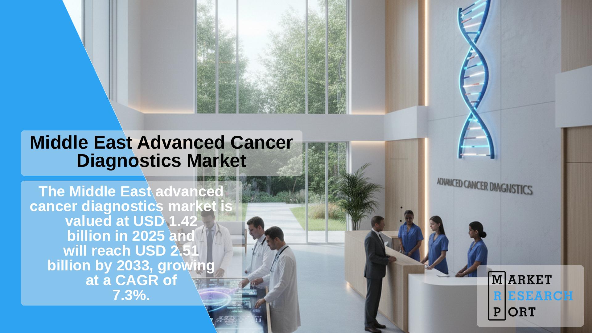 The advanced cancer diagnostics market in the Middle East reached an estimated valuation of USD 1.43 billion in 2025, with robust projections targeting USD 2.51 billion by 2033. This rapid expansion is underpinned by a compound annual growth rate (CAGR) of 7.3%, driven by increasing cancer incidence, urgency for early and accurate detection, ongoing technology upgrades, and far-reaching modernization in healthcare systems across Saudi Arabia, UAE, Kuwait, Oman, Qatar, and surrounding regions.