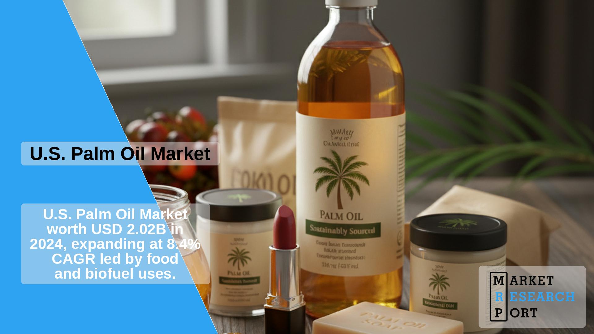 The palm oil market in the United States reached USD 2.02 billion in 2024 and is forecasted to experience robust growth at a CAGR of 8.4% from 2025 to 2030. Growth is supported by increasing demand across food, beverages, biofuels, energy, personal care, and cosmetics industries. The sector is marked by intense competition, with numerous companies striving to differentiate themselves through production capacity, broad distribution networks, and product quality initiatives.